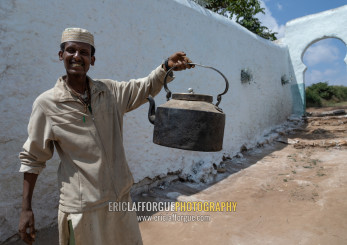 Muslim man holding a huge teapot, Harari Region, Harar, Ethiopia