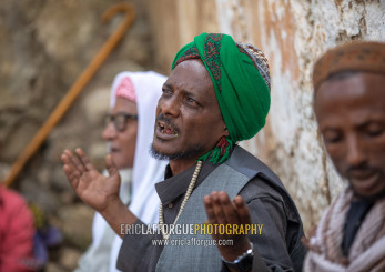 Harari islamic cleric praying during a sufi celebration, Harari Region, Harar, Ethiopia