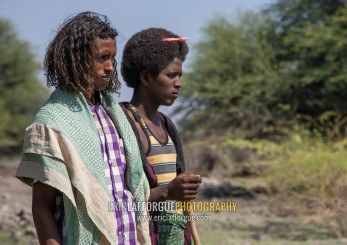 Afar tribe men with hairstyles showing their marital status, Afar region, Semera, Ethiopia