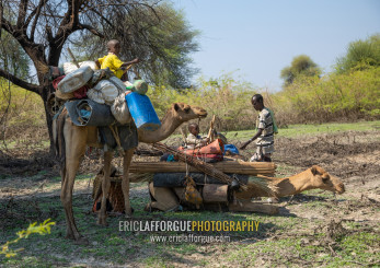 Camel caravan stopping to make a camp, Afar region, Semera, Ethiopia