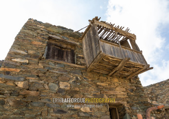 Wooden balcony on al-Namas fort, Al-Bahah region, Altawlah, Saudi Arabia