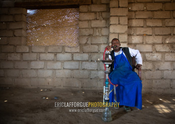 Beja man smoking water pipe, Red Sea State, Suakin, Sudan