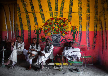 Beja tribe men smoking water pipes, Red Sea State, Port Sudan, Sudan