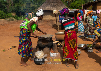 African women cooking in a village, Bafing, Gboni, Ivory Coast