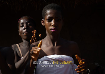 Dan tribe young women dancing during a ceremony, Bafing, Gboni, Ivory Coast