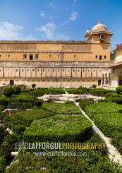 Ornamental garden on terrace at Amer palace, Rajasthan, Amer, India