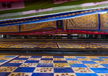 Textiles being printed inside a saree factory, Rajasthan, Sanganer, India