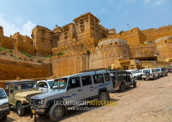Tourists cars in front of Jaisalmer fort, Rajasthan, Jaisalmer, India