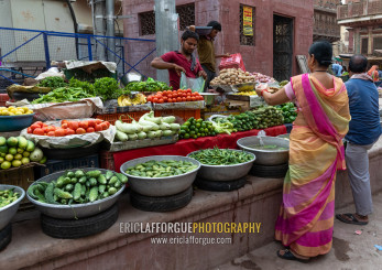 Indian man selling vegetables in a market, Rajasthan, Bikaner, India