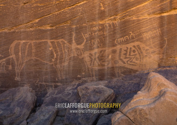 Petroglyphs on a rock depicting cows, Najran Province, Minshaf, Saudi Arabia