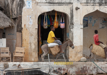 Man riding a donkey, Lamu County, Lamu, Kenya