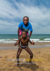 Angolan boys dancing capoeira on the beach, Namibe Province, Namibe, Angola