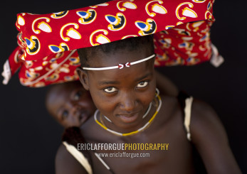 Mucubal Woman With Ompota Carrying Her Baby On Her Back, Virie Area, Angola