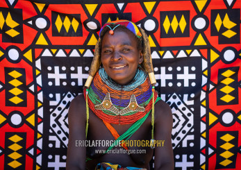 Smiling mumuhuila tribe woman portrait, Huila Province, Chibia, Angola