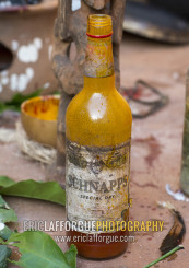 Benin, West Africa, Bonhicon, schnapps bottle used during a voodoo ceremony