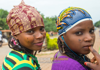 Benin, West Africa, Savalou, beautiful tattooed fulani peul tribe teenagers