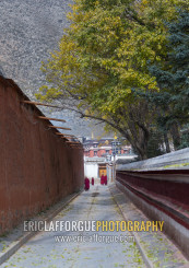 Monks walking in the street of Labrang monastery, Gansu province, Labrang, China