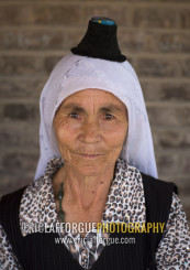 Uyghur Woman Wearing The Smallest Hat In The World, Keriya, Xinjiang Uyghur Autonomous Region, China