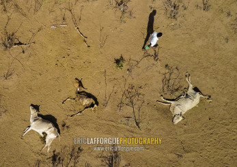Aerial view of dead cows during the drought, Oromia, Yabelo, Ethiopia