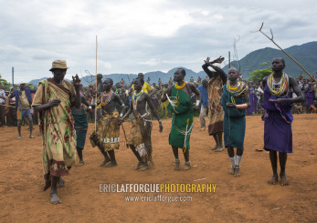 Suri tribe people dancing at a ceremony, Kibish, Omo valley, Ethiopia