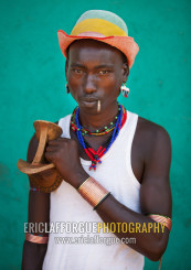 Young Hamar Tribe Man Smoking, Turmi, Omo Valley, Ethiopia