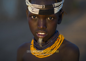 Dassanech Tribe Girl With A Feather In The Chin, Omorate, Omo Valley, Ethiopia