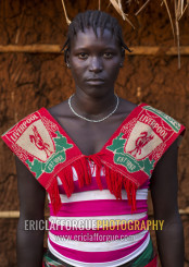 Majang Tribe Woman With A Liverpool Football Club Scarf, Kobown, Ethiopia