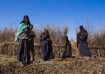 Oromo family in front of their hut, Amhara region, Artuma, Ethiopia