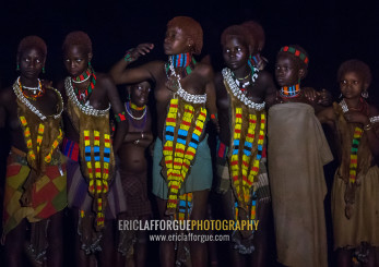 Hamer tribe teenage girls dancing at night, Omo valley, Turmi, Ethiopia