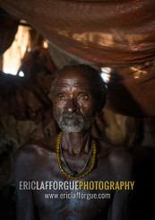 Old hamer tribe man in his hut, Omo valley, Turmi, Ethiopia