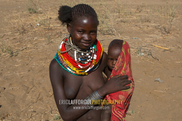 Murle tribe woman with her baby, Omo valley, Kangate, Ethiopia