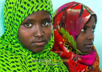 Veiled afar tribe girls at school, Afar region, Semera, Ethiopia