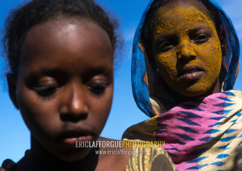 Afar tribe teenage girl with qasil on her face, Afar region, Afambo, Ethiopia