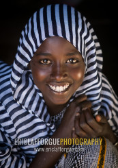 Portrait of a smiling afar tribe teenage girl, Afar region, Afambo, Ethiopia