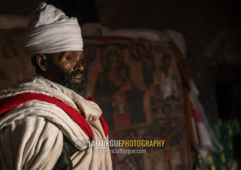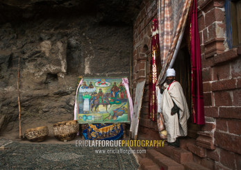 Ethiopian orthodox priest in nakuto lab rock church, Amhara region, Lalibela, Ethiopia