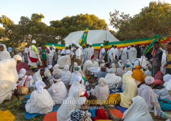 Ethiopian pilgrims resting during Timkat epiphany festival, Amhara region, Lalibela, Ethiopia
