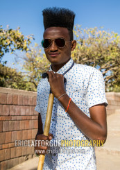 Ethiopian young man with incredible gelled hair, Amhara region, Lalibela, Ethiopia