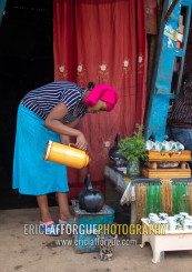 Ethiopian woman preparing coffee in a bar, Harari region, Harar, Ethiopia