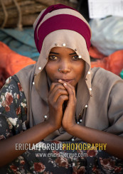Cute veiled ethiopian girl in the market, Harari region, Harar, Ethiopia