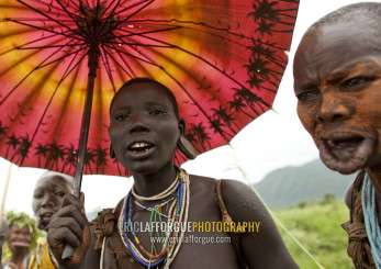 Suri Woman With A Chinese Umbrella, Kibbish Village, Omo Valley, Ethiopia