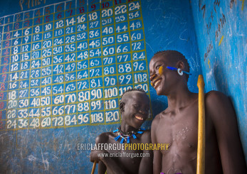 Mursi Tribe Boys In A School, Mago Park, Omo Valley, Ethiopia