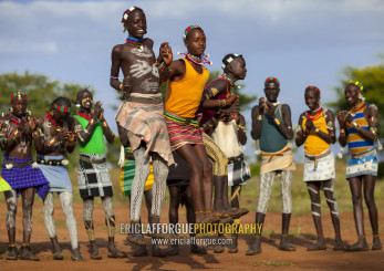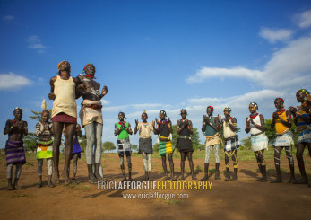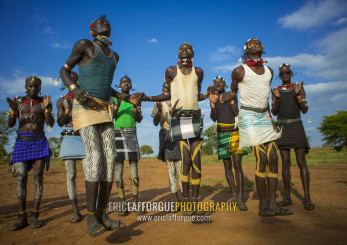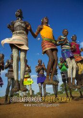 Bashada Tribe Men Dancing And Jumping, Dimeka, Omo Valley, Ethiopia