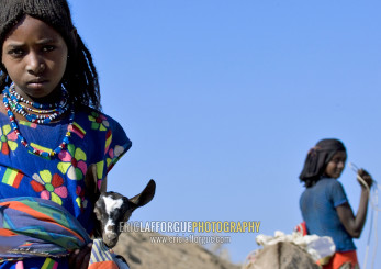 Afar girl carrying a goat, Assaita, Afar regional state, Ethiopia