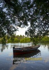 Fishing dhow moored along coastline, Lamu county, Matondoni, Kenya