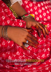 Tuareg girl in traditional clothing showing her hand with henna, Tripolitania, Ghadames, Libya