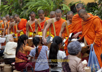 Lao buddhist monks collecting alms, Luang prabang, Laos