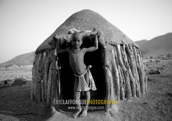 Himba Boy In The Entrance Of His Hut, Okapale Area, Namibia
