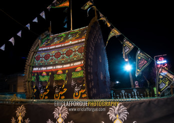 Nakhl in front of an Hosseinieh during Muharram, Yazd Province, Yazd, Iran