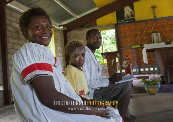 People inside a church, New Ireland Province, Langania, Papua New Guinea