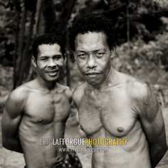Portrait of shirtless men, Milne Bay Province, Trobriand Island, Papua New Guinea